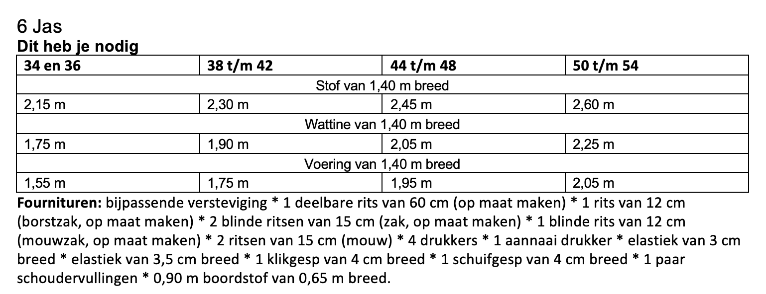 Dit patroon kun je maken in maat 34 t/m 54.