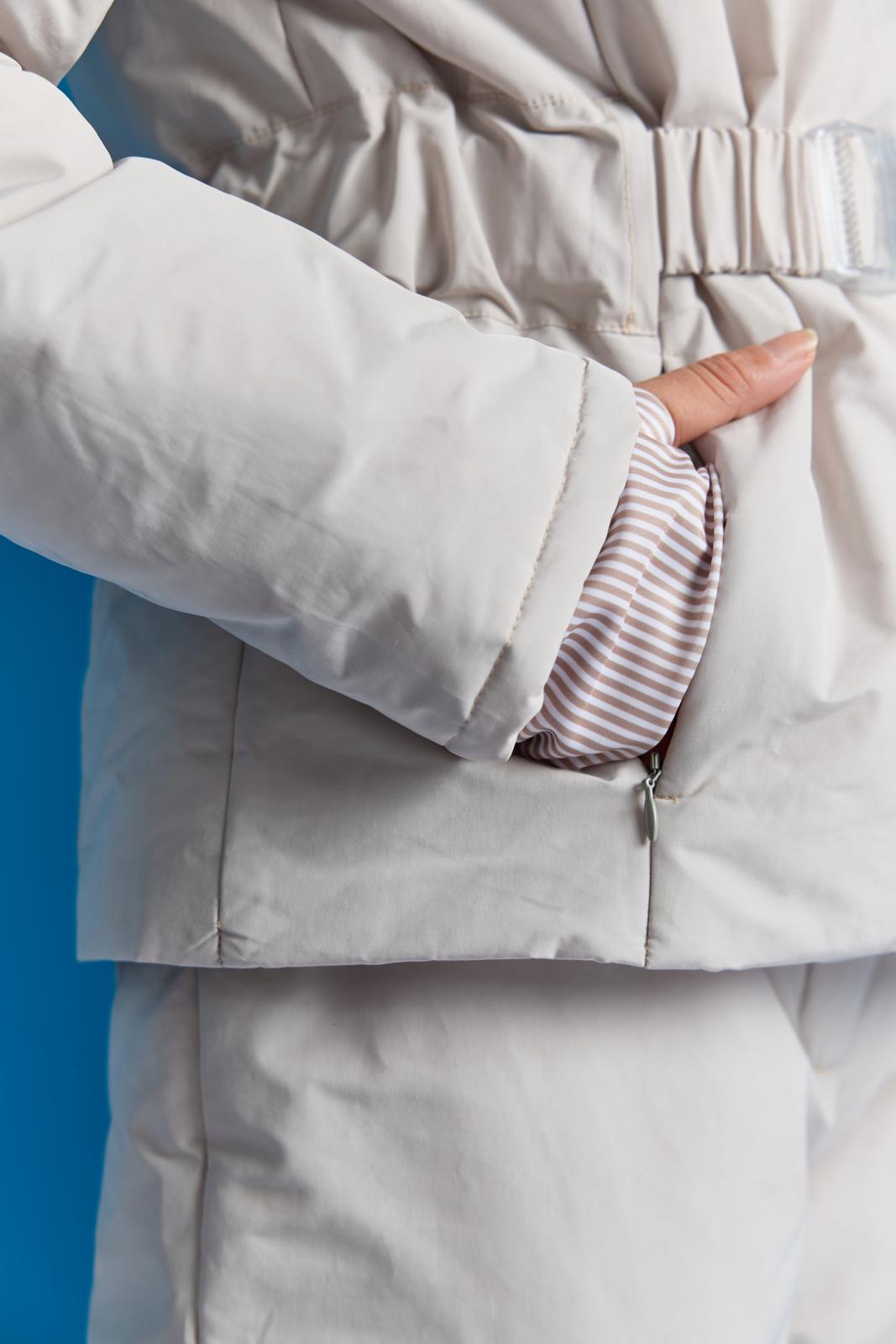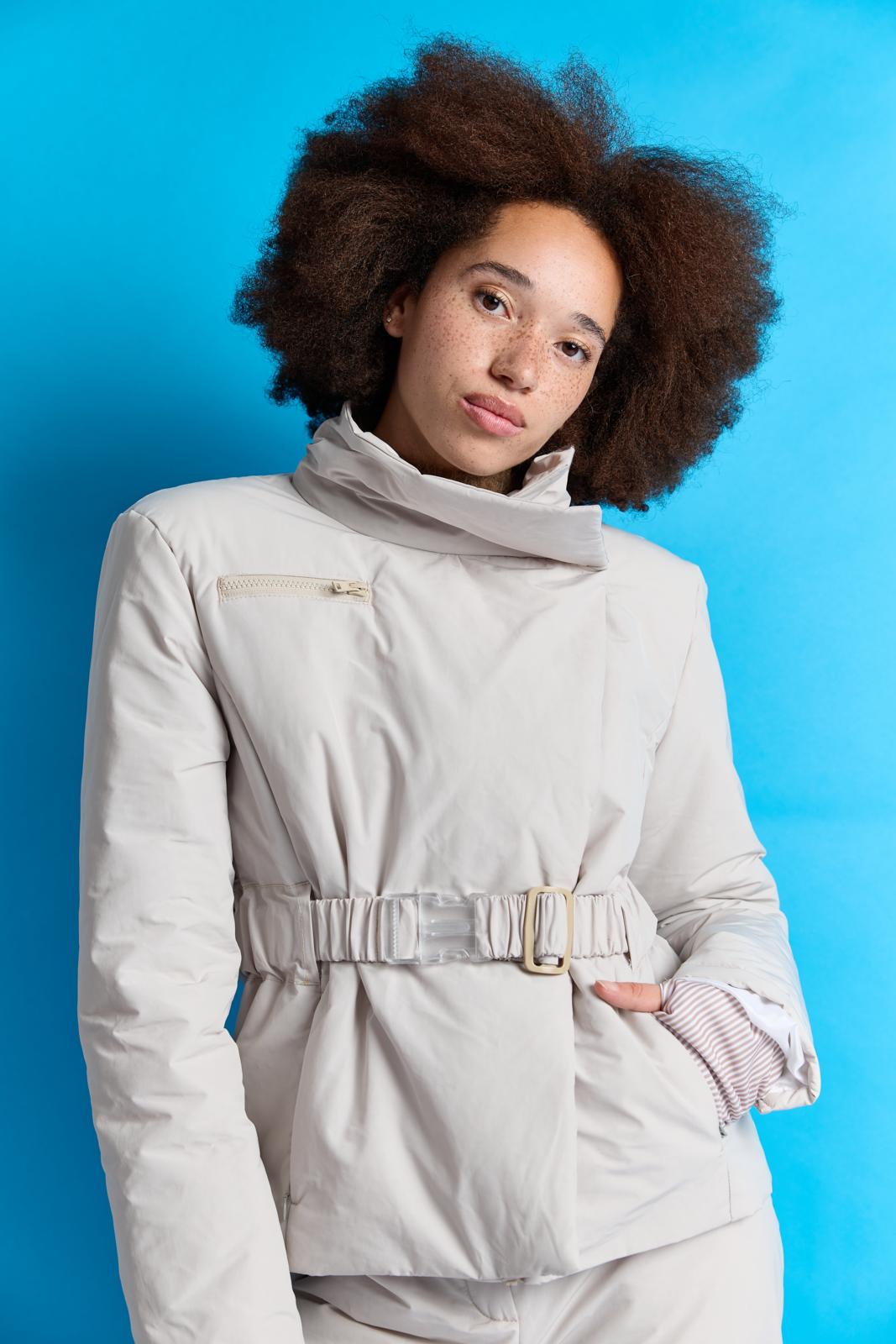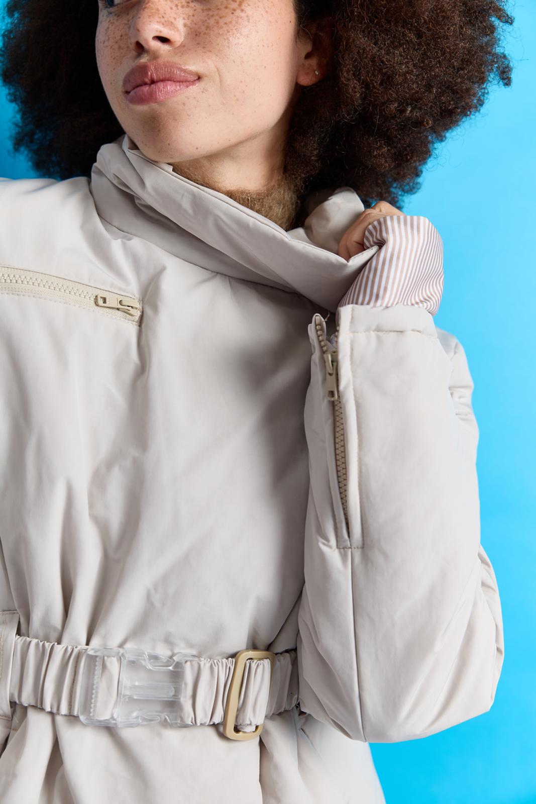 Een heerlijk warme winterjas met een opstaande boord en asymmetrische ritsluiting. In de deelnaden zijn zakken verwerkt met blinde ritsen. De manchetten zijn van gestreepte boordstof voor een chic accent. De ceintuur heeft achterin elastiek. Dit jack is ook perfect voor dagelijks gebruik!