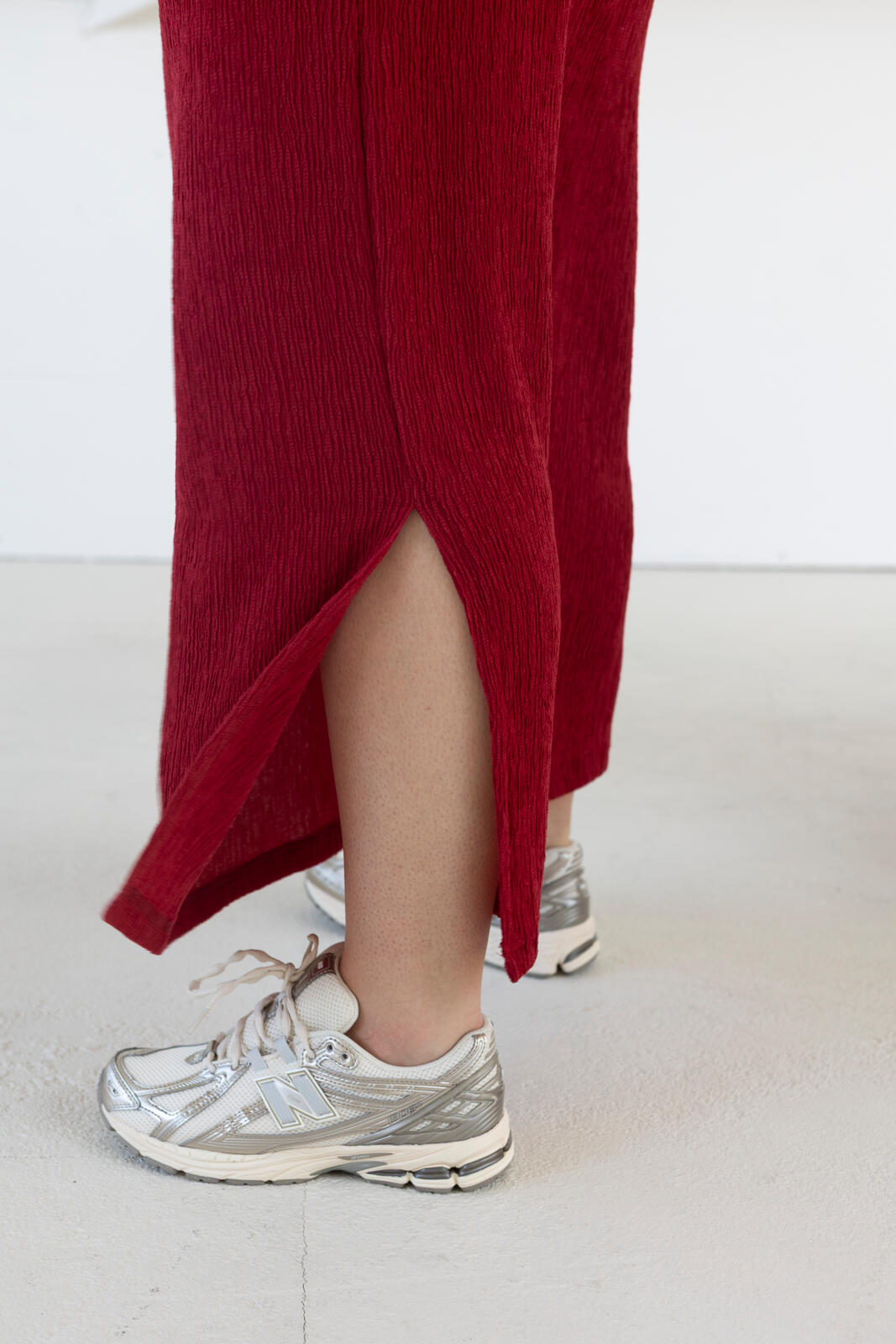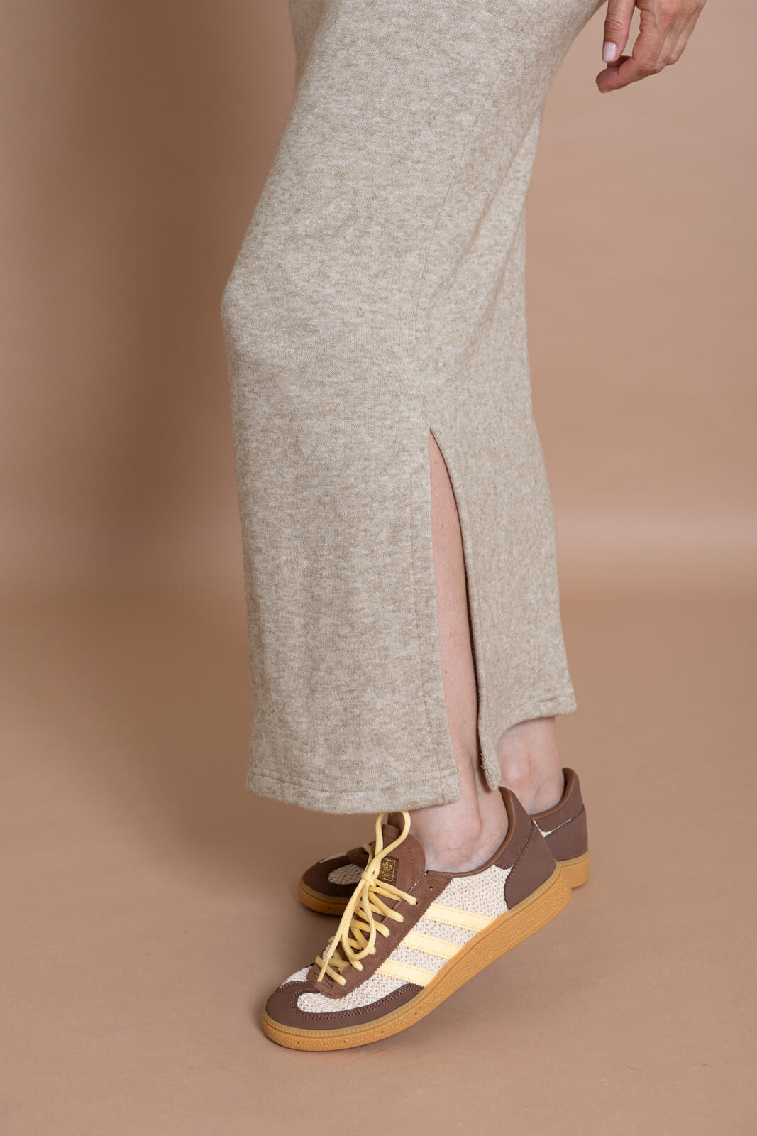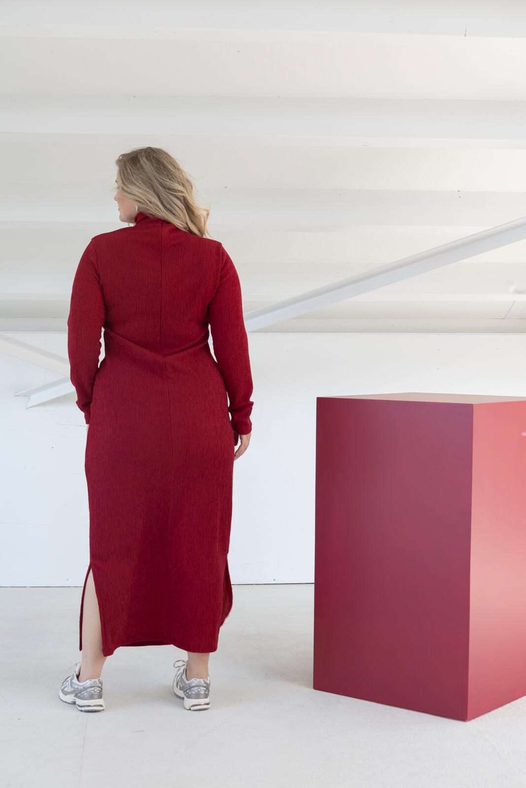 Een lichaamsvolgend oftewel bodycon-model jurk van wollige tricot met extra stretch.