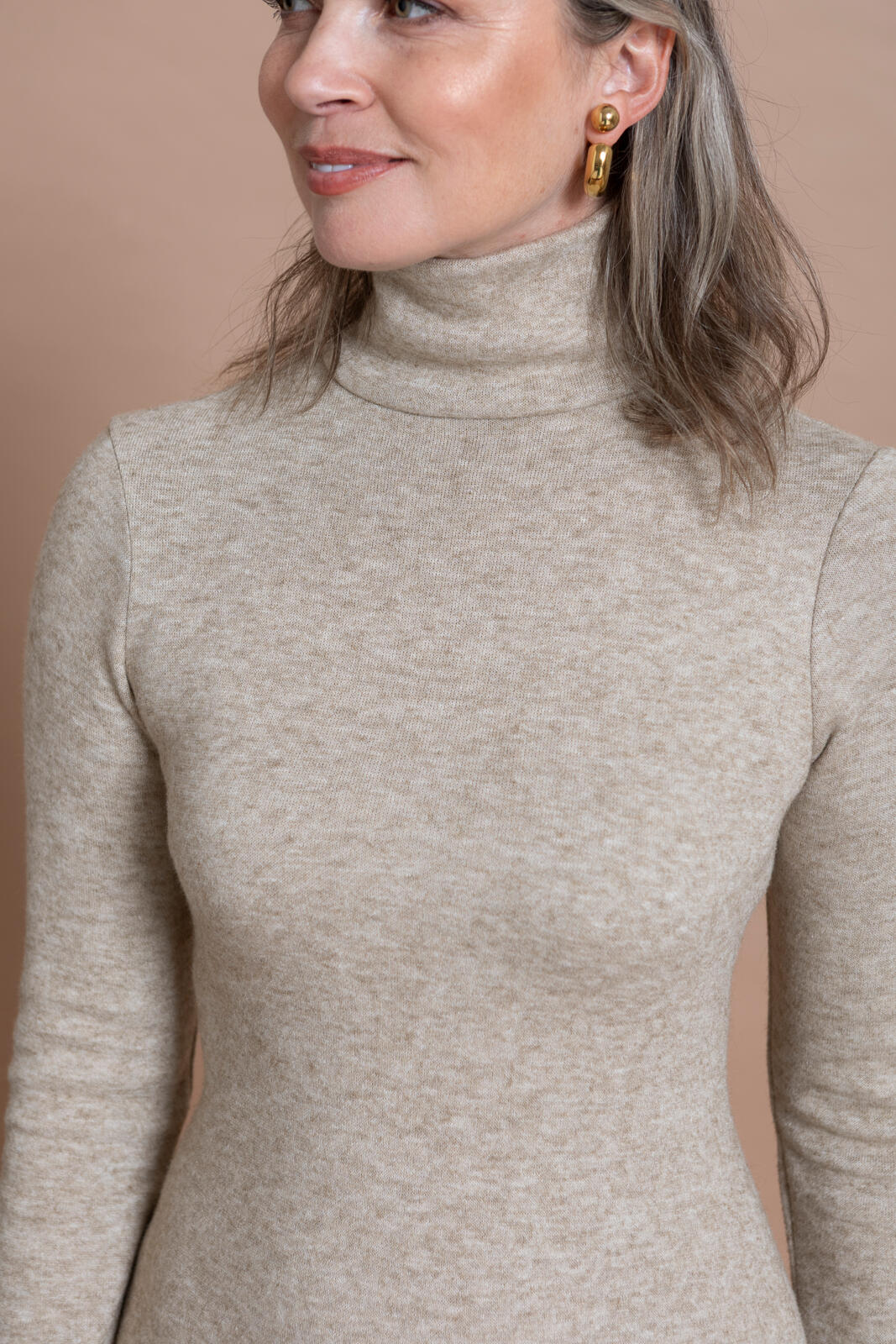 Een warm en comfortabel basisstuk om te combineren met bijvoorbeeld een mouwloos vest van imitatiebont.