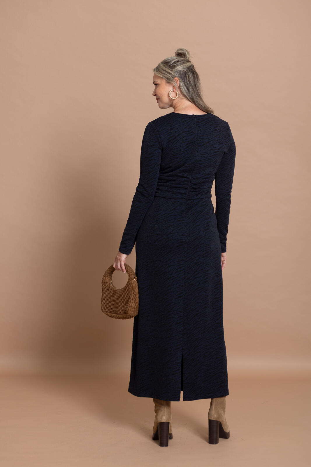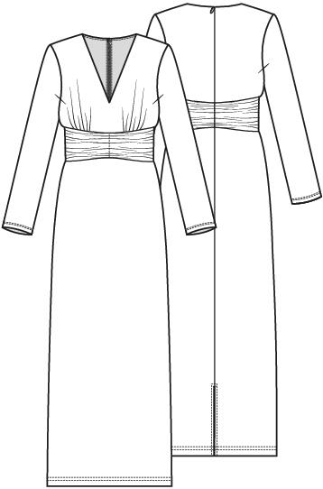 Deze jurk doet wat voor je figuur! Dat komt door het diepe decolleté en het sterke (verhoogde) tailleaccent met de gerimpelde band. De jurk is gevoerd en heeft achter een blinde rits. Je kunt hem ook maken in een superfeestelijke stof!