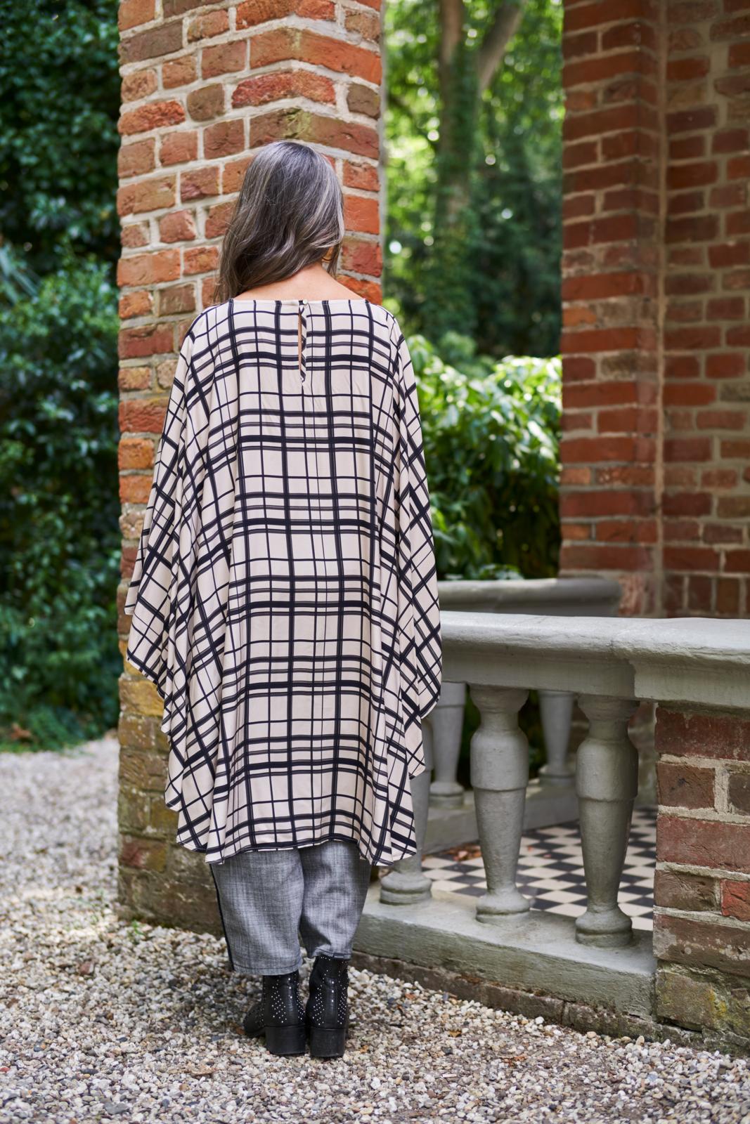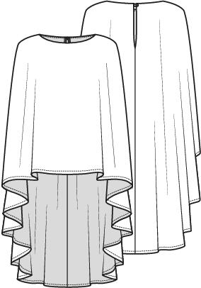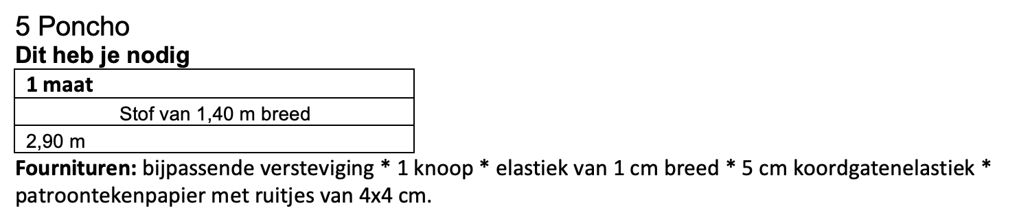 Zo’n toffe cape heb je in een handomdraai gemaakt: de cape is achter langer en valt vloeiend. De halsopening krijgt achter een split met knoopje als sluiting. Wil je een extra warme poncho, neem dan fleece of een wollige stof.