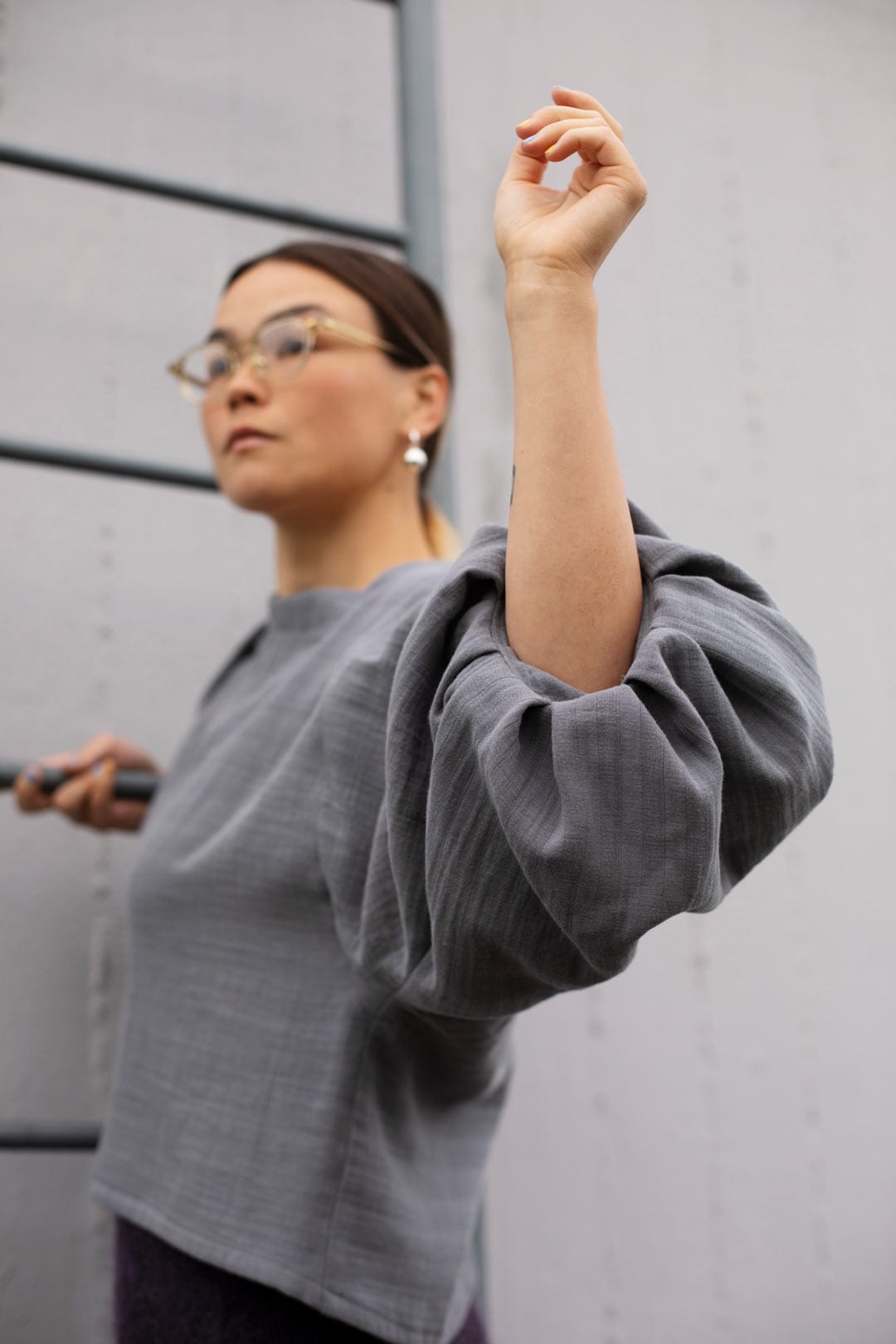 Blouse: Grijze biologische double gauze (100% katoen, 140 gsm) – Siebenblau