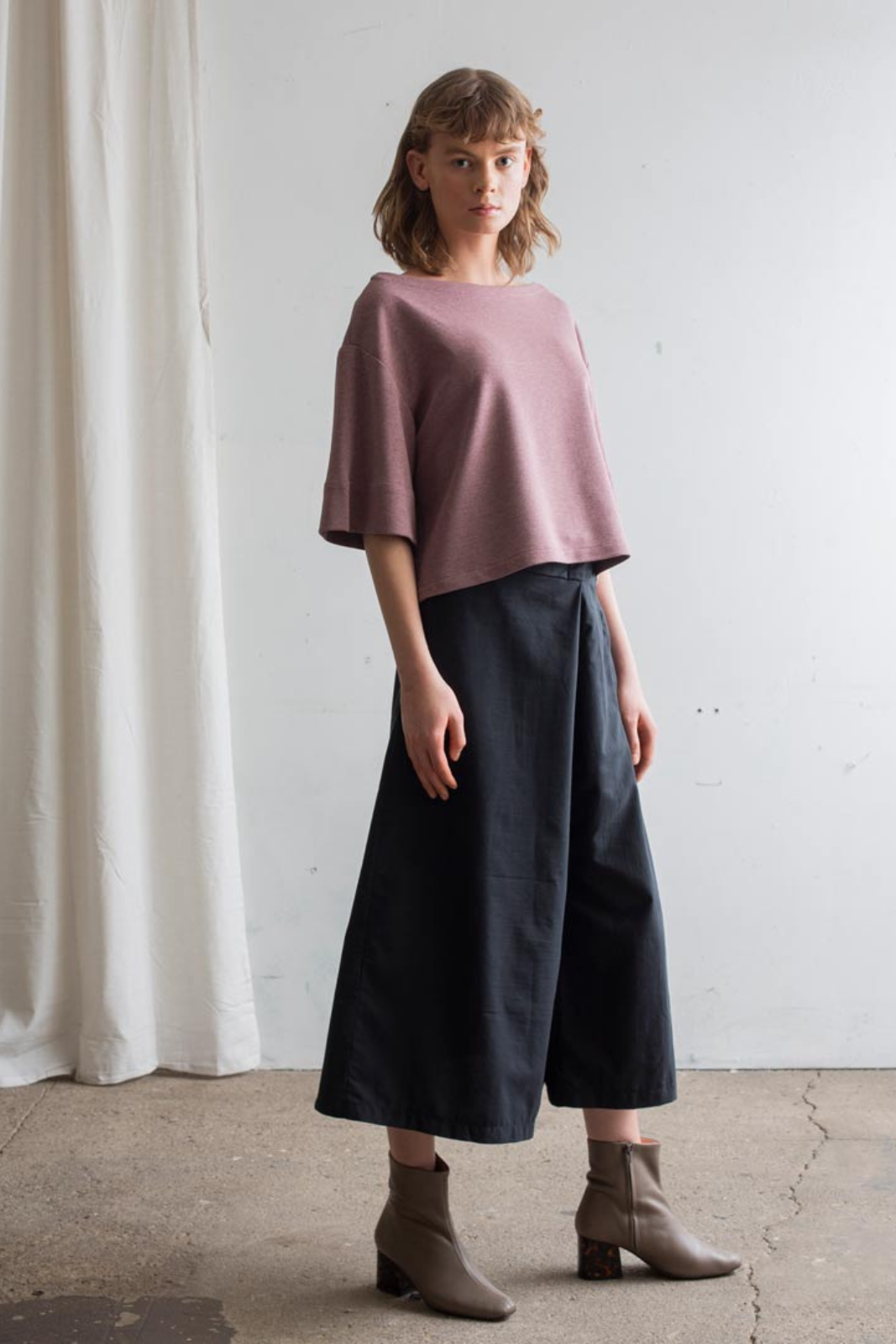 De LUCE-broek is een opvallend, asymmetrisch ontwerp met een wijd, rokachtig silhouet. De broek heeft praktische zijnaadzakken en een drukknoopsluiting in de taille. De unieke vorm en beweging van de broek maken van LUCE een uitgesproken mode-item dat elegantie en comfort perfect combineert.