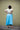 Maria González Leal (156 cm) draagt de turquoise LUCE in maat 6 (aangepaste lengte).