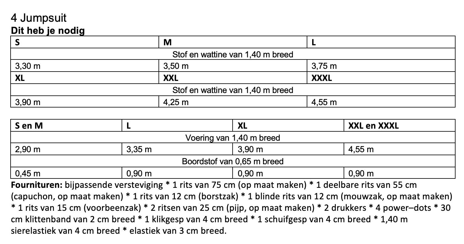 Als je patroon KM2513-04 bestelt krijg je jumpsuit KM2513-01, jas KM2513-02, salopette KM2513-03 en broek KM2513-05 er gratis bij.