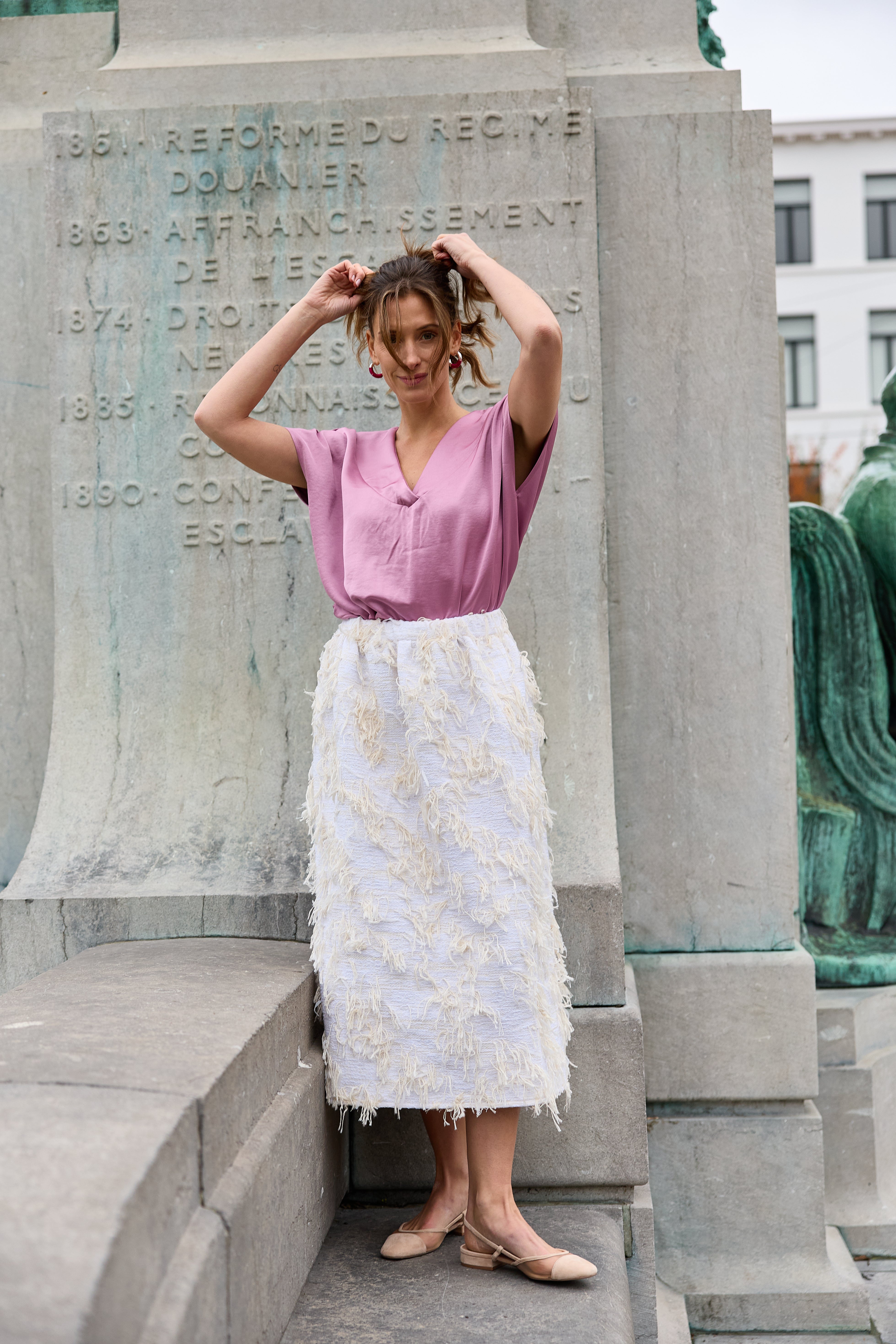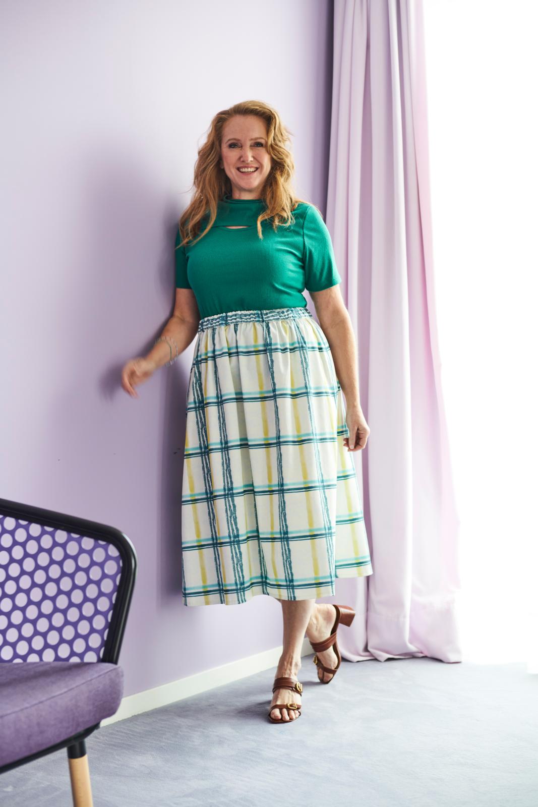 Dit supereenvoudige rokmodel met elastiek in de tailleband, wordt vanzelf speciaal als je er een bijzondere stof voor neemt. Zoals deze structuurrijke tweedachtige stof. Maar ook soepele stoffen zijn geschikt. Een echte must-make!