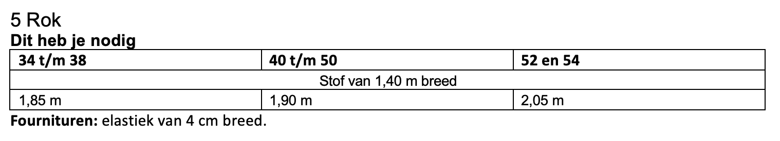 Dit patroon kun je maken in maat 34 t/m 54.