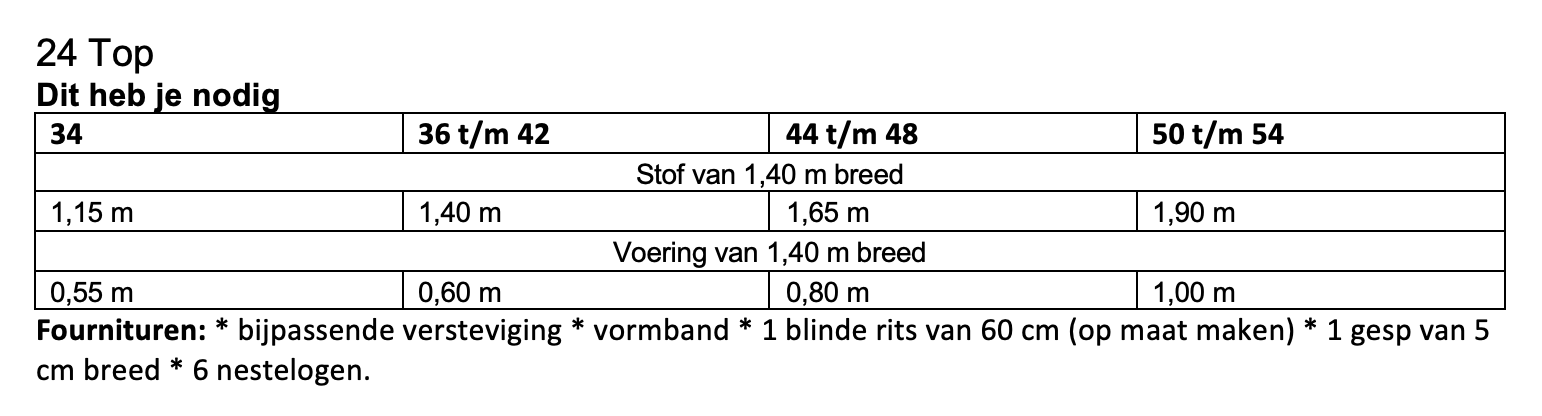 Dit patroon kun je maken in maat 34 t/m 54.