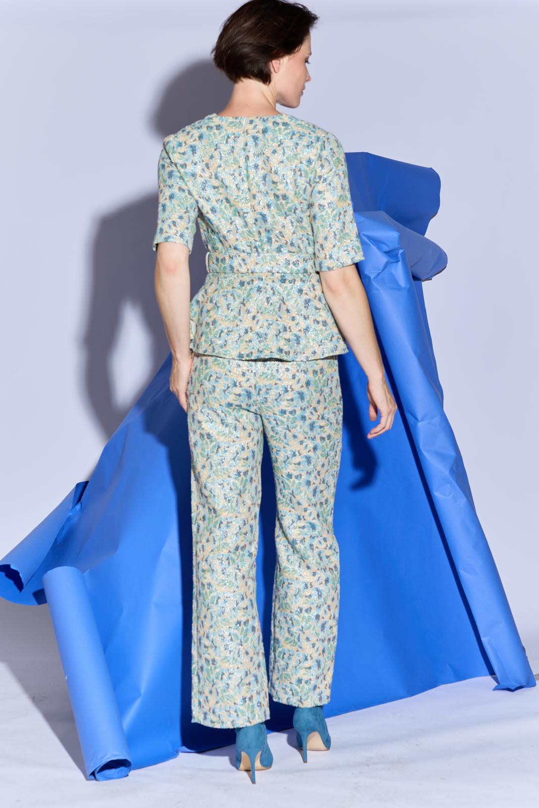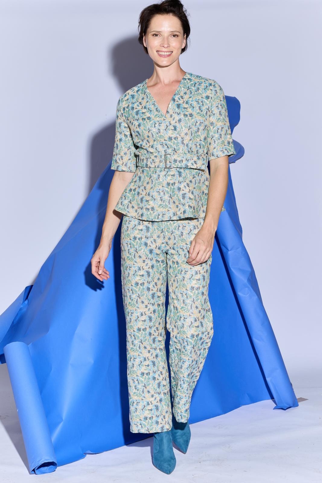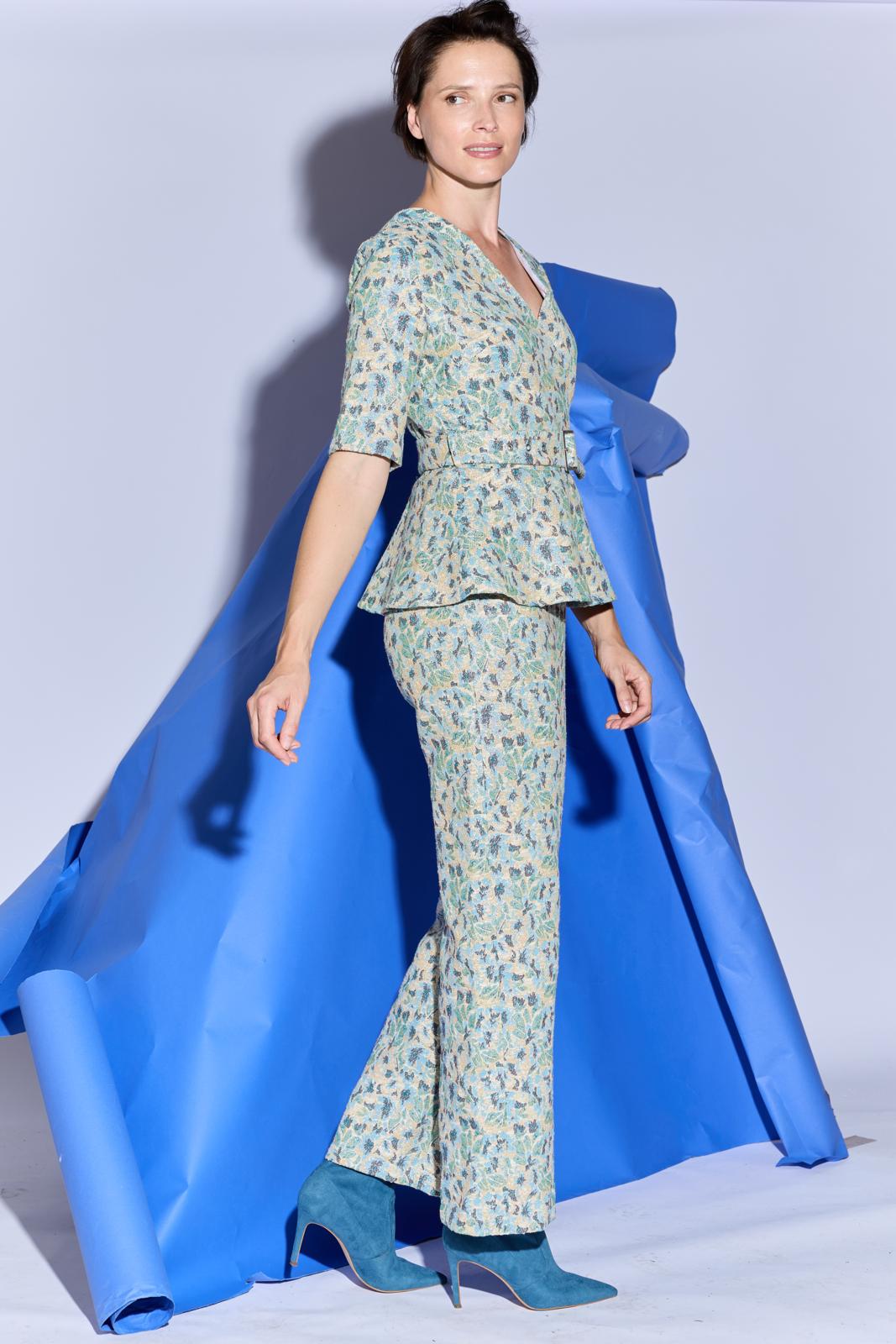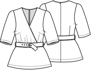 De top met peplum en blinde rits aan de achterkant, staat perfect op een rechte pantalon of jeans. De top heeft dat extra’s door het gerende schootje en de stoffen ceintuur. Een goed patroon voor een geklede stijl. Maak de top van een matte kostuumstof voor een representatieve stijl. Van een feestelijke stof zoals brokaat of jacquard voor een party-outfit.