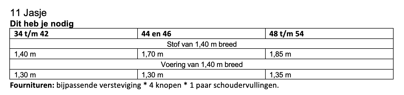 Dit patroon kun je maken in maat 34 t/m 54.