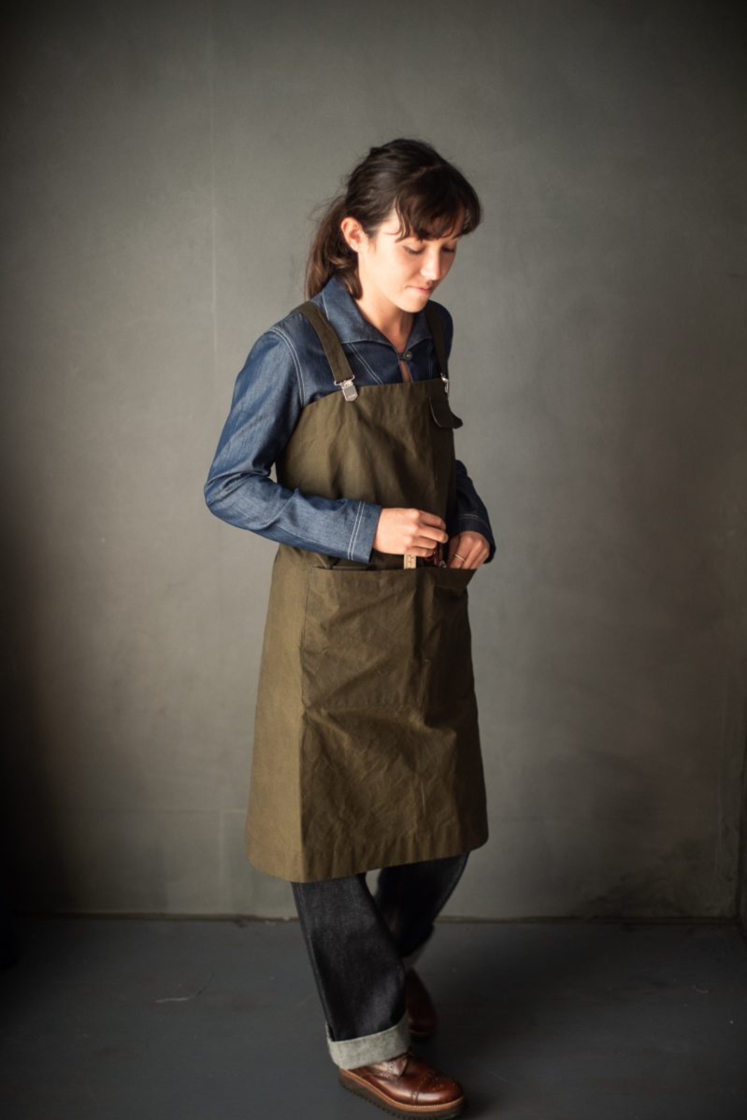 De Maker’s Apron is een functioneel en stijlvol schort, ontworpen door Lucy Dunham en winnaar van onze Oilskin Competition. Het model is geschikt voor makers van alle disciplines en is volledig verstelbaar, zodat het past bij elke lichaamsvorm. Het schort heeft een comfortabele kruisband op de rug, een borstzak voor kleine benodigdheden en een grote, gedeelde taillezak met speciale houder voor een schaar.